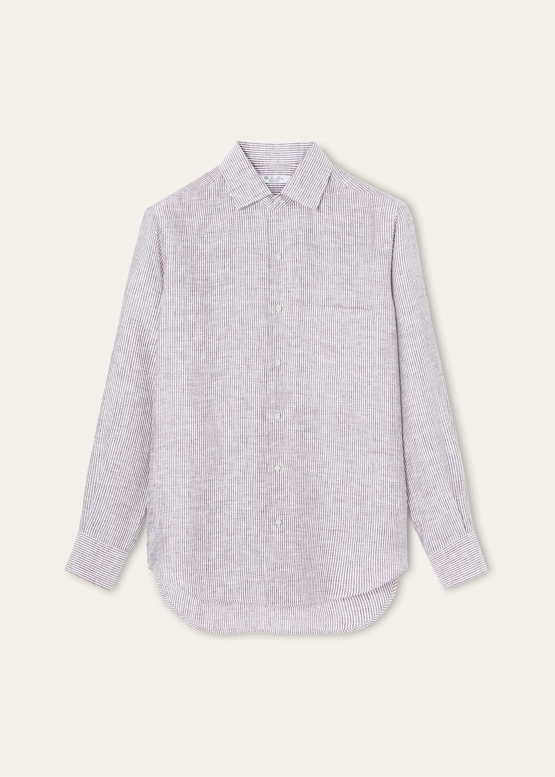 Iconic Loro Piana shirt in linen with a fine stripe pattern. Very cool and a pleasure to wear. The collar with facings ensures a crisp, impeccable finished look, also when worn open without a tie. This is the definitive Loro Piana shirt for leisure time dressing. Perfect worn alone or under a jacket.