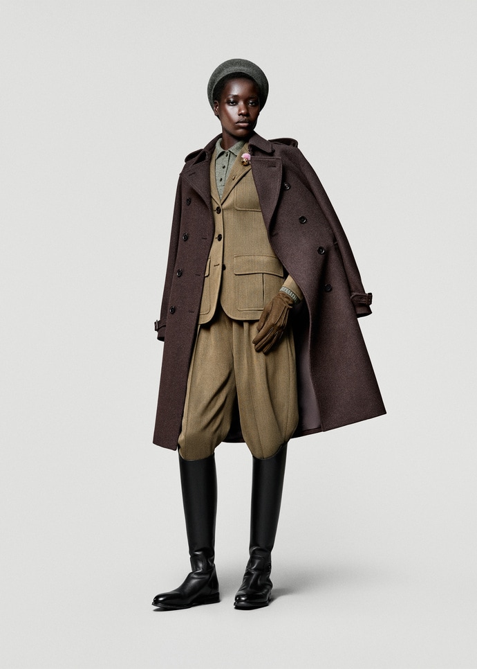 Balancing refinement with considered function, the Dyonne jacket from the Loro Highlands Capsule is shaped to a classic feminine line. It is rendered in wool twill, woven with mouliné yarns for tonal depth and a crisp hand. The single-breasted design is lined in smooth silk and turns to reveal a stitched detail at the back, redolent of a half-belt.